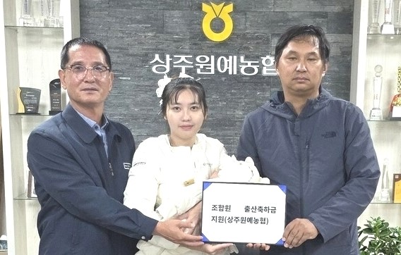 경북 상주원예농협(조합장 이한우)이 청년 조합원의 출산을 축하하며 출생축하금을 전달, 지역사회에 따뜻한 미담을 전했다.
